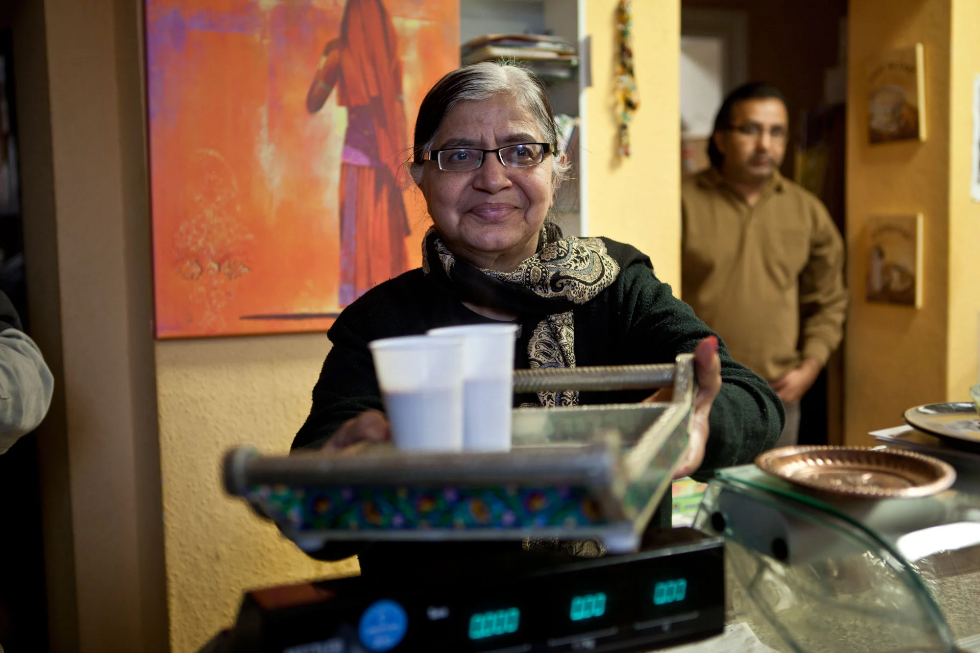 Aus dem Schaufenster lächelt einen Buddha an, drinnen dann die Inhaber des indischen Supermarkts, Asma und Lal. Die beiden kommen aus Delhi und haben viel mitgebracht. Seit 17 Jahren verkaufen sie indische Spezialitäten in ihrem kleinen Geschäft in der Biebererstraße. Die Wände sind curry-farben gestrichen und es riecht schon nach indischen Gewürzen, die eine ganze Wand des Ladens einnehmen.