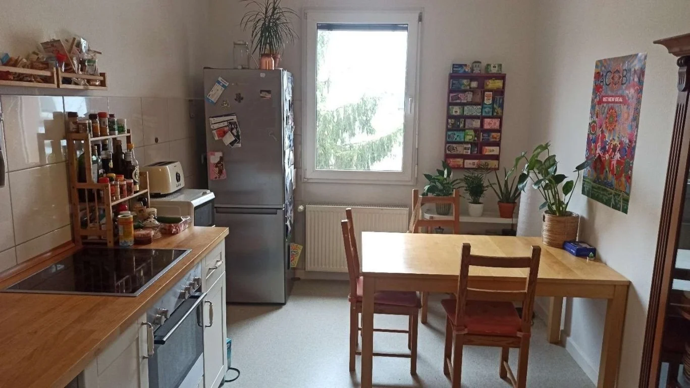 The 23m2 room faces the quiet inner courtyard, is large and spacious and gets evening sun. It is nice and cool in spring and summer. The room is furnished with a bed, desk, wardrobe, a futon/sofa and a bedside table. The room costs 495 euros / month all in all. The rent for the whole timeframe would be 950 Euros. The apartment has a fully equipped large kitchen, a living room, a large daylight bathroom with shower and bathtub and a separate toilet. The apartment is in a great location, near Goetheplatz in Offenbach and a four-minute walk from the Ledermuseum S-Bahn stop. From here it takes about 10 minutes to get to the Hauptwache in Frankfurt. You can also take a nice bike ride along the Main. Offenbach city center is less than a 10-minute walk away. There are several supermarkets, drugstores, restaurants, Spätis directly around the apartment and the Main and Offenbach harbor are only a 5-minute walk away. The city forest can be reached in 10 minutes by bike, the Fechenheimer Mainbogen in only 5 - so you are also quickly in the countryside. I am a sociologist and like cooking, baking and playing (board games), going to concerts and the cinema. I enjoy talking about politics and a progressive/leftist attitude is important to me. I tend to be quiet and tidy. My partner lives in Amsterdam, so I'm traveling quite a lot.